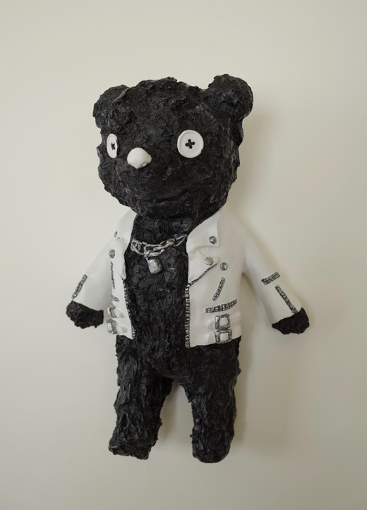 フェイクファーと粘土で制作したぬいぐるみを型取り、FRP、油性塗料