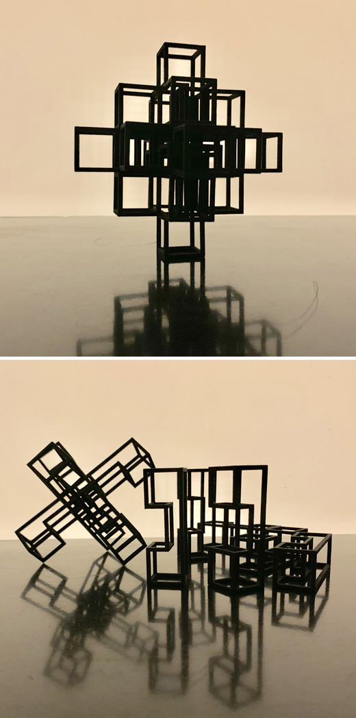 日本の伝統工芸である組木細工。 美しい形状、工芸的な技能、パズルとしての粋な遊び心。 その形状そのものを抽象化し、パズルとしとの機能を浮き上がらせた。 9本で構成したバージョン。