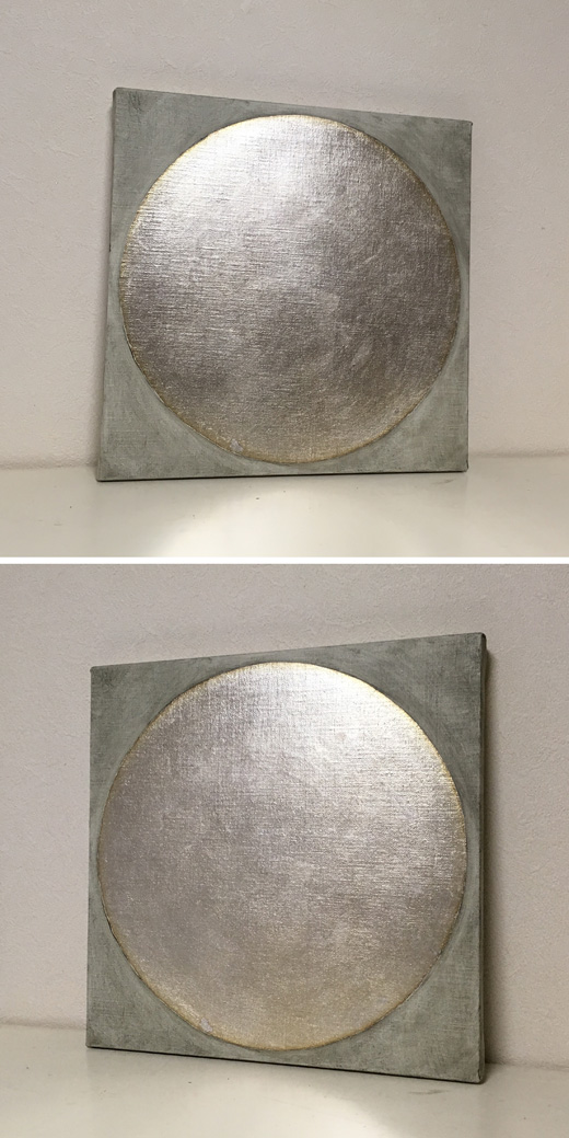 キャンバスに油彩と銀箔で月の絵を描きました。