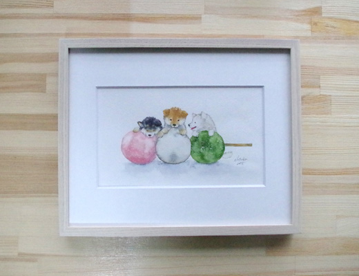 おもに森の生き物を題材にファンタジックな水彩画を発表し続けている村田なつか氏。童話本や絵本のワンシーンを思わせる場面構想力は、透明水彩の独特な滲みとマスキング技法とを駆使することで、より洗練された境地に達しています。動物イラストレーションの王道を承けつつ、自然の陰りや発光感まで豊かに表現できる余白の巧みな使い方が印象的。可愛らしいだけではなく、鉱石や食べ物と動物との組み合わせも試みるなど、グラフィカルでシュールな着想の面白さにも特徴があります。本作は、彼女の2019年カレンダー「しばいぬとおやつ」のために描き下ろした原画です。