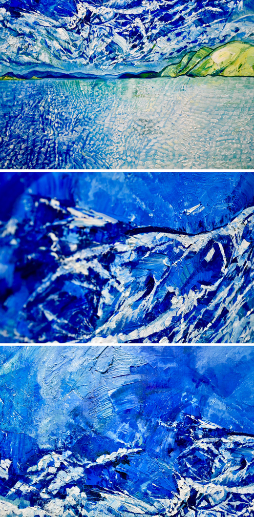 私は制作をする上で「モチーフをどう描けるか。」という点を大切に考えている。 私の絵の多くは、油絵の具の厚塗りである。筆致の方向性や絵具の厚み、特に色はよく捏ねて、一つ一つ確認した上で要素を選んで描いている。