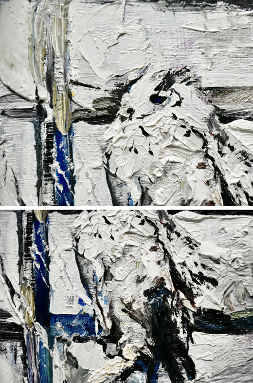 私の絵の多くは、油絵の具の厚塗りである。筆致の方向性や絵具の厚み、特に色はよく捏ねて、一つ一つ確認した上で要素を選んで描いている。