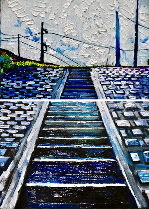 私の絵の多くは、油絵の具の厚塗りである。筆致の方向性や絵具の厚み、特に色はよく捏ねて、一つ一つ確認した上で要素を選んで描いている。