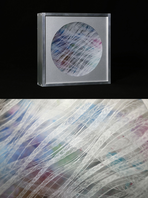 アクリル板を削って描画したものを重ねています。/素材:アクリル板、アクリルミラー板、アルミ製額、ラッカースプレー
