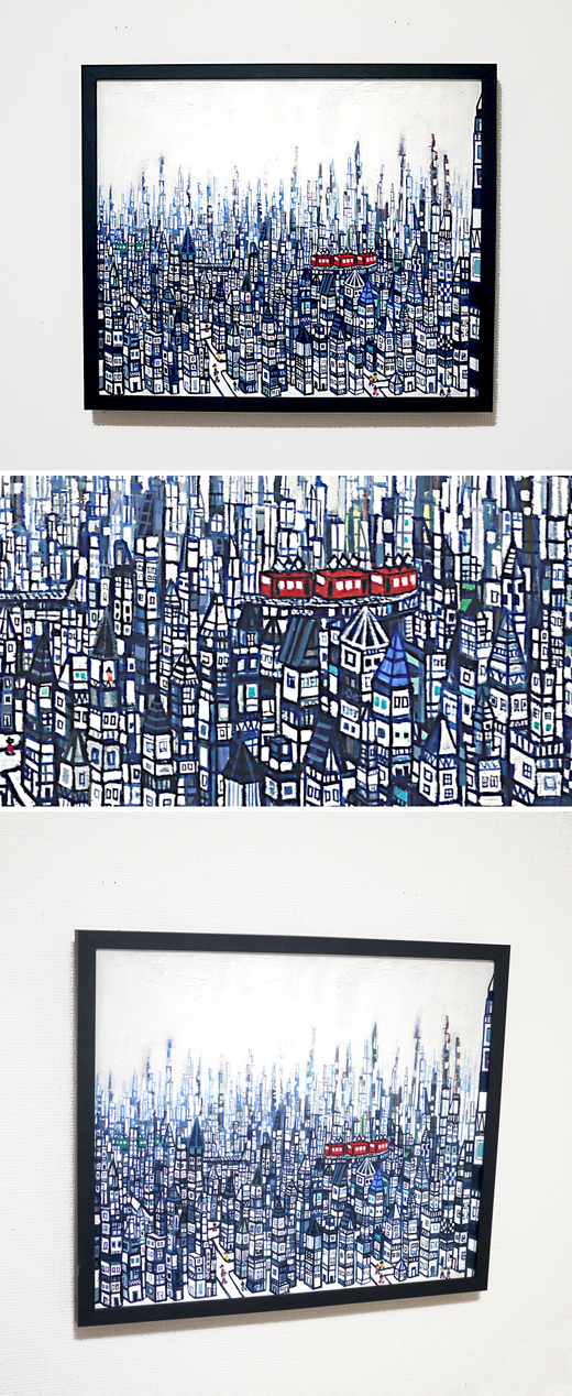 キャンバスに油彩で描きました。絵の厚みは約1cmあり額装してあります。額の厚みは約2cmです。