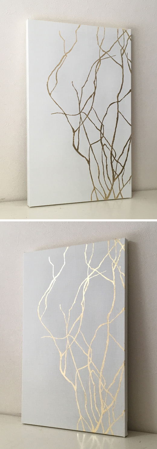キャンバスに金色の箔だけで、抽象的な樹の枝を描いて見ました。和風にも抽象的なモダンアートとしても飾ることが出来ます。