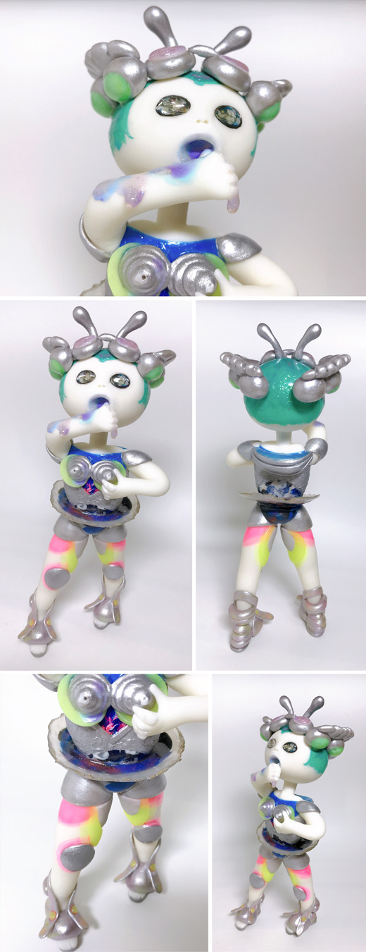 Mix acrylic paint into resin clay and mold it. Other materials used are varnish,resin.