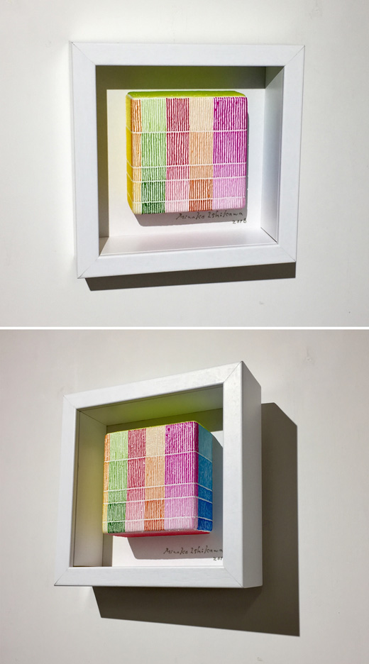 The true beauty of Minako Ishikawa's work is that the lines are drawn with a single thin acrylic stroke, which is arranged among thousands while subtly changing the color scheme.