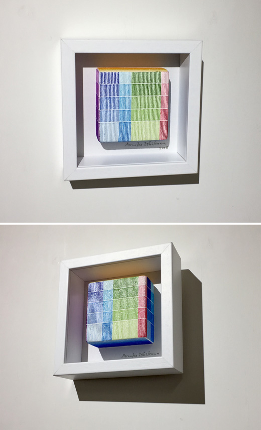 The true beauty of Minako Ishikawa's work is that the lines are drawn with a single thin acrylic stroke, which is arranged among thousands while subtly changing the color scheme.
