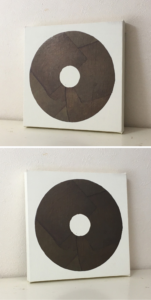 パネルにキャンバスを張り、油彩と黒の箔で円相を描きました。