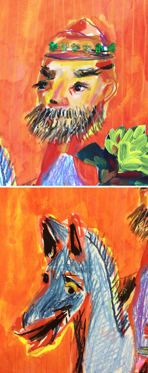 Acrylic gouache, colored pencil, mixed media on paper