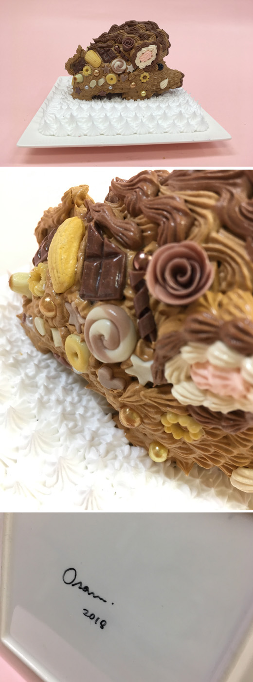 In addition to his interesting viewpoint of substituting the cream in sweets that everyone has seen since childhood, the tactile cuteness, as well as the imposing presence of the pieces as works of art are all appealing and attract support from a great number of people.