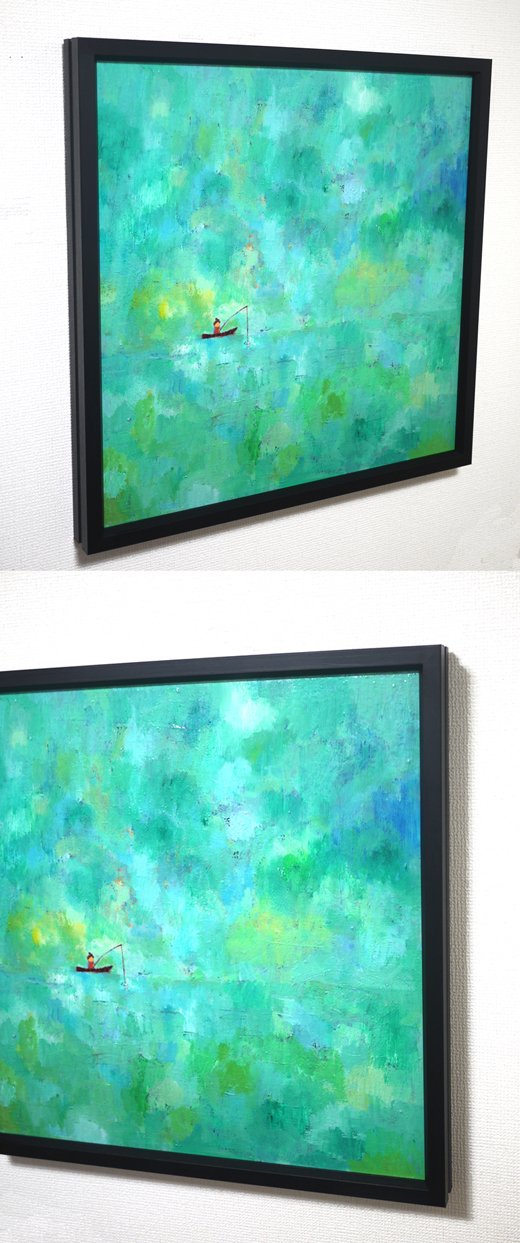 キャンバスに油彩で描きました。絵の厚みは約2cmあり額装してあります。額の厚みは約3cmです。