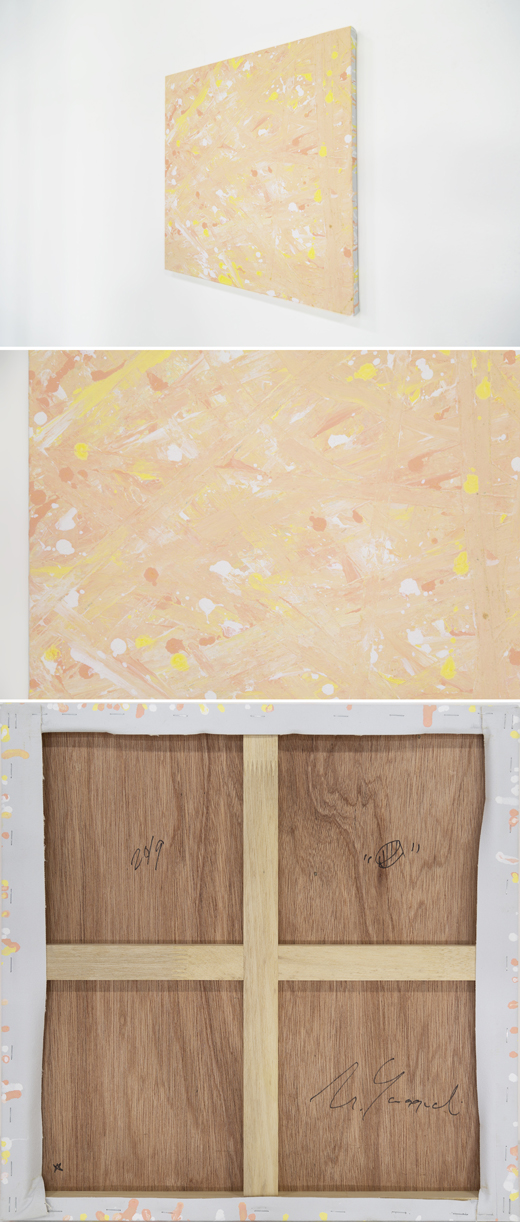 “Hello World (A)”はINDEPENDENT TOKYOの展示で発表された山口の “Hello World” シリーズの作品です。Hello World 4連作の中の一部で淡いピンクを基調とした柔らかな色彩が特徴です。