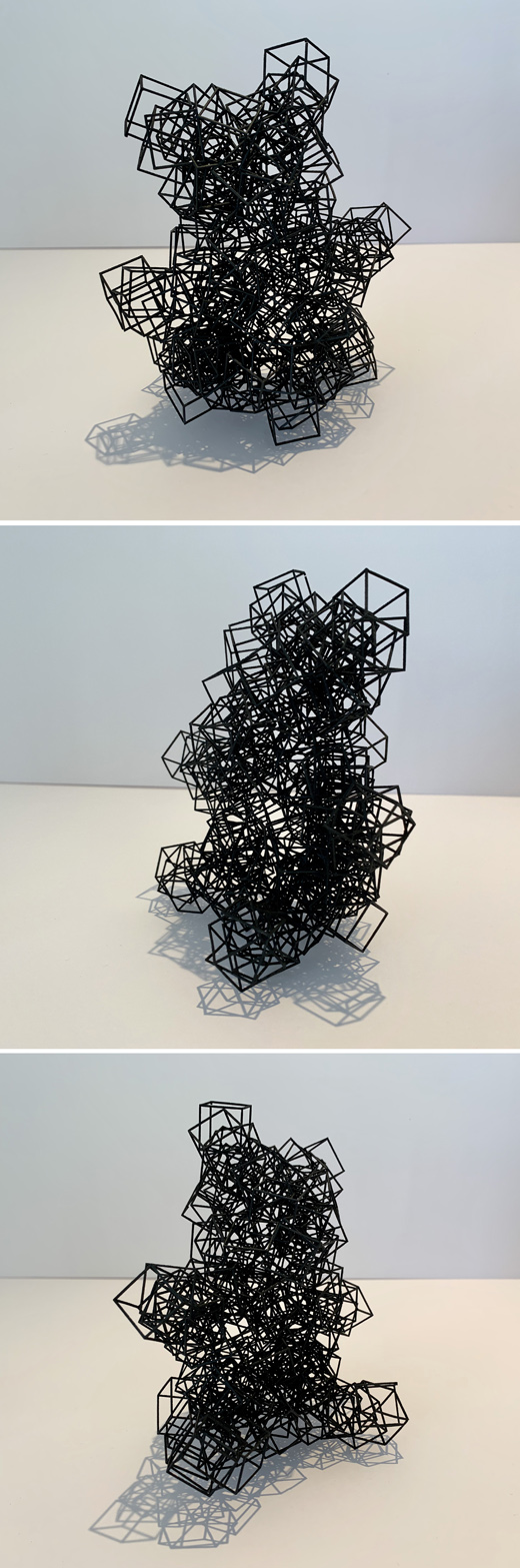 この世の最小単位がひとつのCUBEだとしたら、それを積み上げ、積分することで、あらゆるモノの形が形成される。 記憶の彼方にあるモノ、テディベアを形成した。
