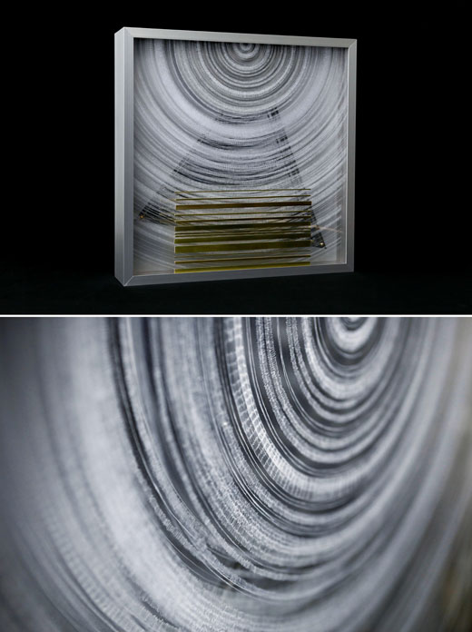 アクリル板を削って描画したものを重ねています。/素材:アクリル板、アクリルミラー板、木枠、アルミニウム、真鍮、ステンレス、アクリル絵の具、ラッカースプレー、金具