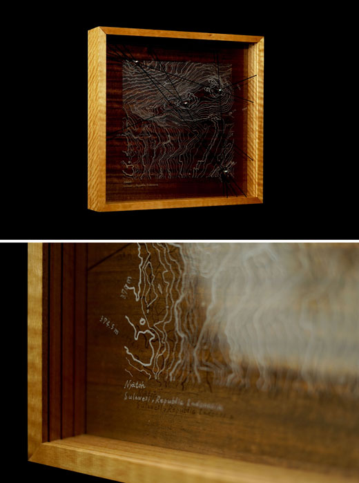 アクリル板を削って描画したものを重ねています。/素材:アクリル板、突き板、ニヤトー、ラッカースプレー