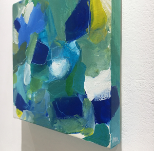 アクリル絵具や油絵具による塗りのつぶれやかすれ、色の重なり合いや模様のようなものたちが作り出すユニークなハーモニーが、彼女の絵の最大の美質です。その時々の彼女自身が置かれた環境や内面世界が手から筆へと転送され、色合いはときにオーソドックスな油画の伝統を思わせるメランコリックな情緒をまとい、特にはストリートアートのようにポップで鮮やかな躍動で見るものの心を震わせます。