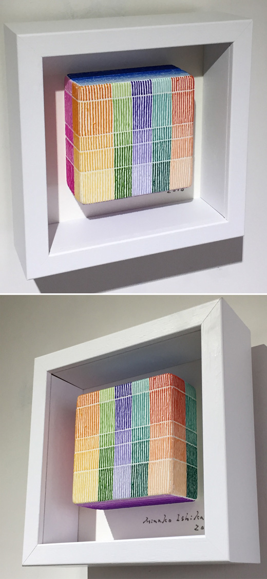 The true beauty of Minako Ishikawa's work is that the lines are drawn with a single thin acrylic stroke, which is arranged among thousands while subtly changing the color scheme.