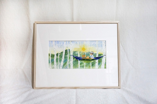 おもに森の生き物を題材にファンタジックな水彩画を発表し続けている村田なつか氏。童話本や絵本のワンシーンを思わせる場面構想力は、透明水彩の独特な滲みとマスキング技法とを駆使することで、より洗練された境地に達しています。動物イラストレーションの王道を承けつつ、自然の陰りや発光感まで豊かに表現できる余白の巧みな使い方が印象的。可愛らしいだけではなく、鉱石や食べ物と動物との組み合わせも試みるなど、グラフィカルでシュールな着想の面白さにも特徴があります。本作は、彼女の個展「SHIBACAMP」(2018年)で展示し好評を博した原画です。