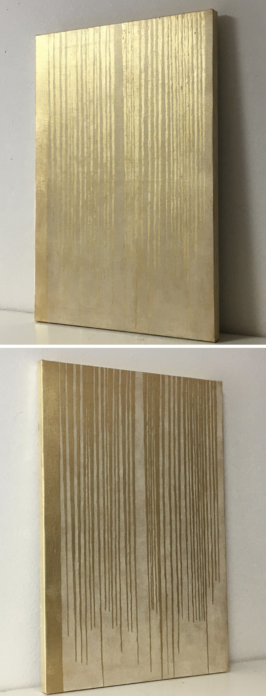 キャンバスに金色の箔と油彩だけで滝の絵を描きました。