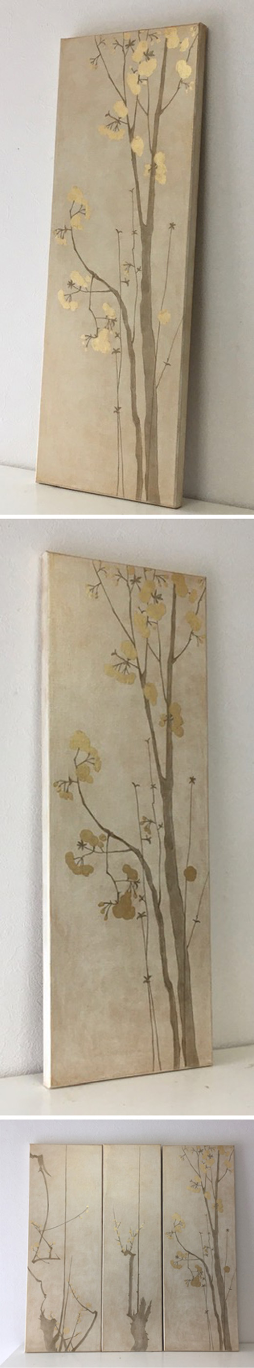 キャンバスに油彩と金色の箔だけで桜の絵を描きました。同じ梅のシリーズ三枚と並べて飾ることができます。