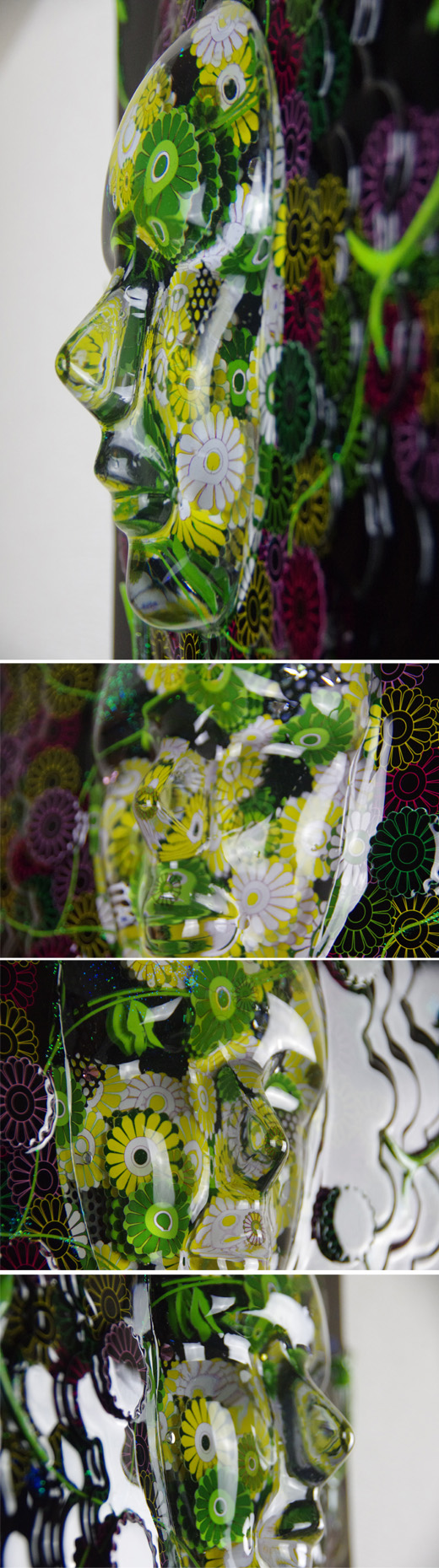 In a land filled with abundant emotions, a bud of hope is born. Of course, that layers are not visible to our naked eyes. "Visible" is just a result of light information being transmitted from the retina to the brain. However, the brain of living creatures senses the surroundings by also other mechanism, it's not hard to imagin that a different scene is projected in our brain. KAERU expresses the existence of such layers or scenery that cannot be confirmed in human retina, with light transmitting transparent resin and multi-layer works.