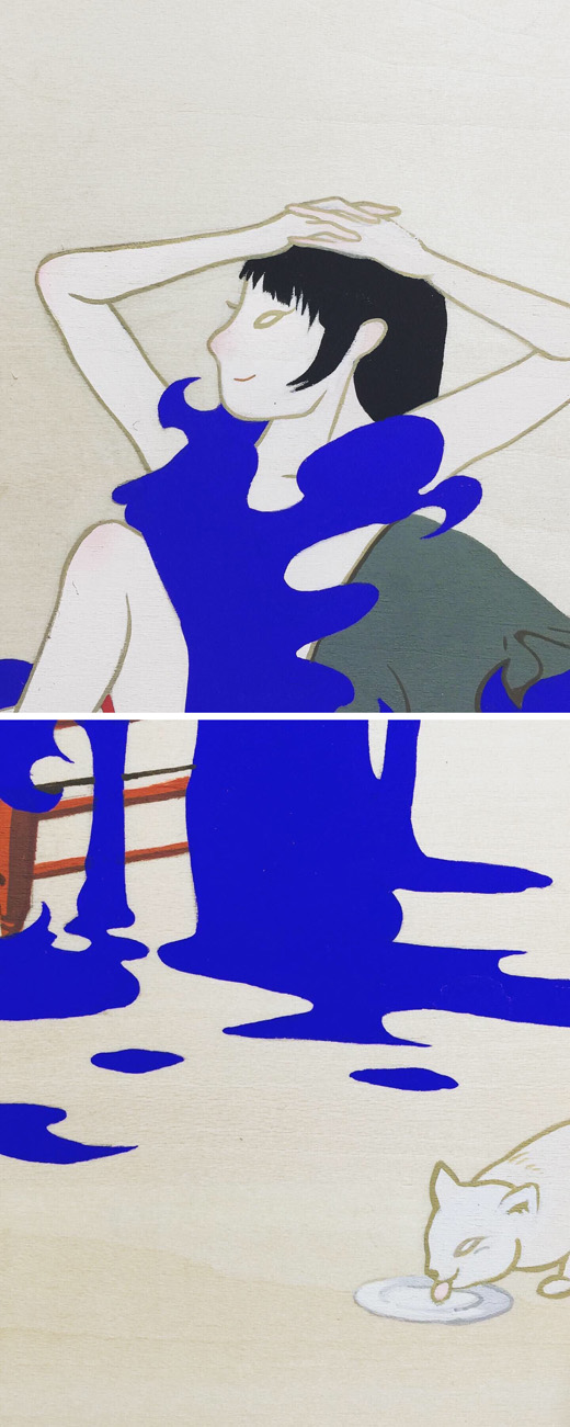 Compared to Korean art education which emphasizes basic technique, Japan is said to have many artists freely expressing themselves without being bound by frames.Recently, she has been building a single worldview with more uniformity in her works.