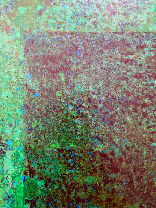 アクリル、和紙、オイル/技法、和紙にアクリル絵具を何十回と重ねて描いて行く。