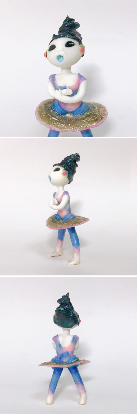 Mix acrylic paint into resin clay. Other materials used are varnish, resin.