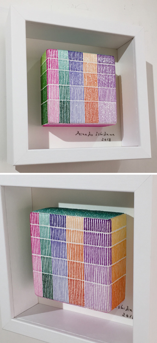 The true beauty of Minako Ishikawa's work is that the lines are drawn with a single thin acrylic stroke, which is arranged among thousands while subtly changing the color scheme.