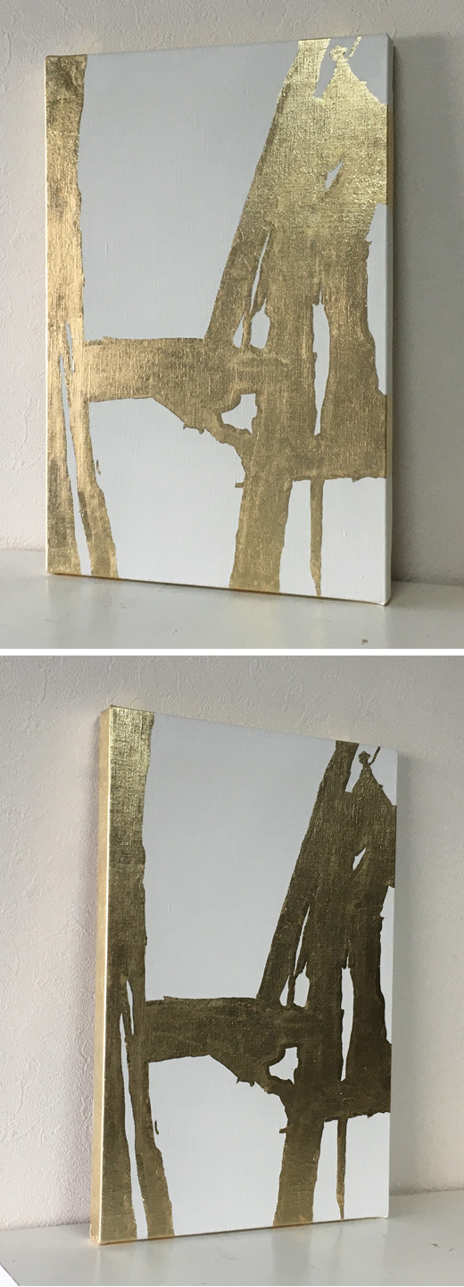 キャンバスに金色の箔だけで抽象画を描いてみました。