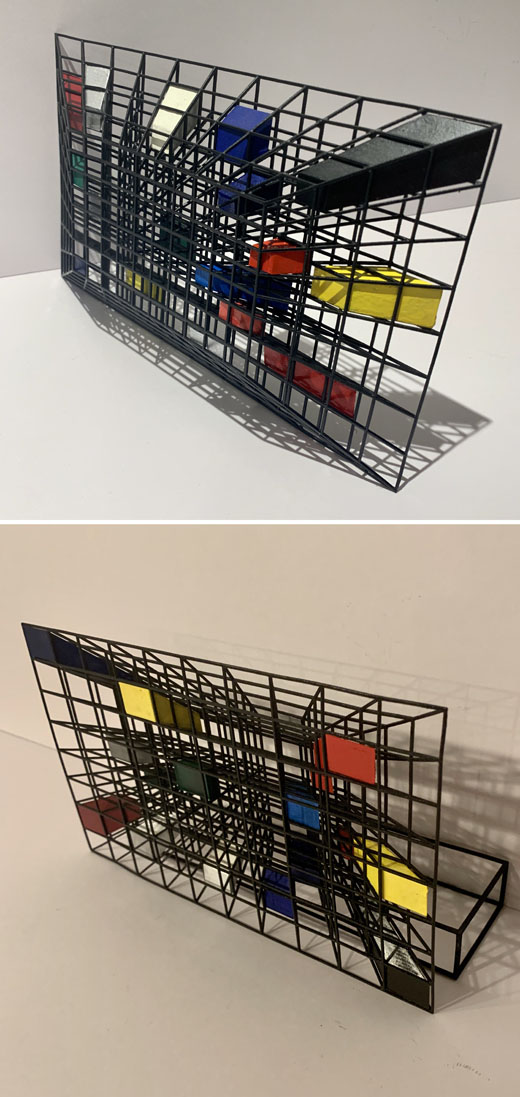 閉塞感に満ちた日常に、少しでも前向きになれるようにとの願いを込めた作品。 3次元グリッドで構成美を表した。 立体感を逆手にとり、遠近法と錯視の原理でものすごく薄い。 奥行、疾走感を感じて、少し見方を変えるだけで、未来を眺める前向きな気持ちになれればとの願いを込めて。 perspective はとても好きな言葉。遠近法、見通し、未来への展望。