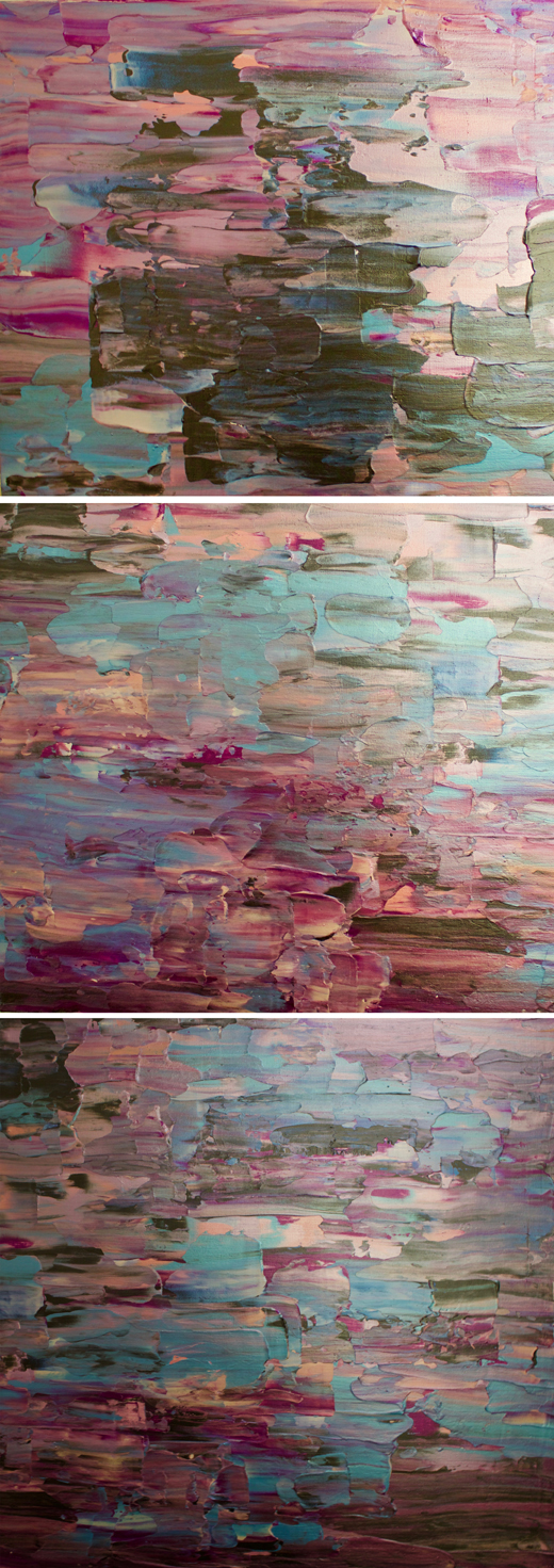 毎年のこの時期は、空から雨が飽きることも無く降り続け、地上に潤いをもたらせます。 紫の花々が咲きひろがり、梅雨の水色と合って、天然のイルミネーションが生まれ、傘から覗いたその光景が記憶に残ることも。活発な季節が来る前のこの時期だけは、詩人のような気持ちで目の前の風景を眺められるのかもしれません。 特殊な技法で描かれているため、見る角度や周囲の雰囲気(照明など)によって、作品自身がその色彩や様子が変化していきます。