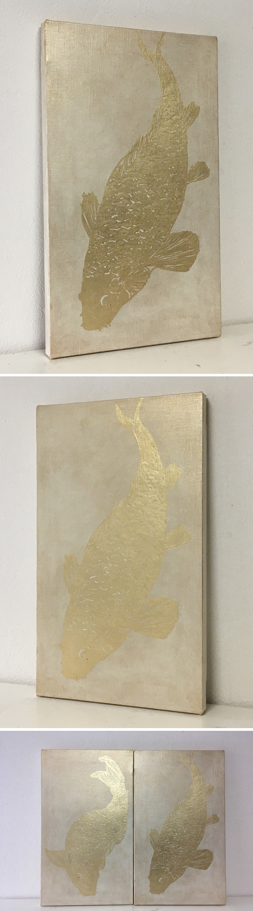 キャンバスに油彩と金色の箔で鯉の絵を描きました。鯉1と並べて飾ることが出来ます。
