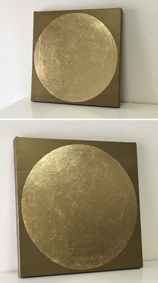 キャンバスにアクリルと金色の箔だけで月の絵を描きました。