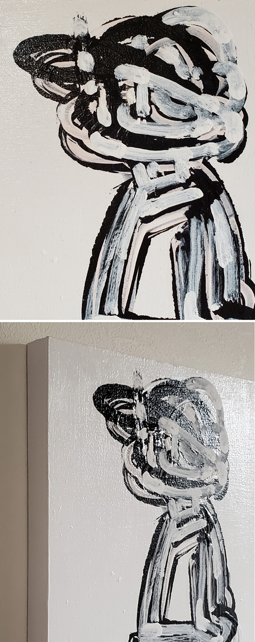 日々意識的無意識的に行っている反復運動とそれに費やした時間を、同じイメージを何度も描き重ねることで「生」を表現している。