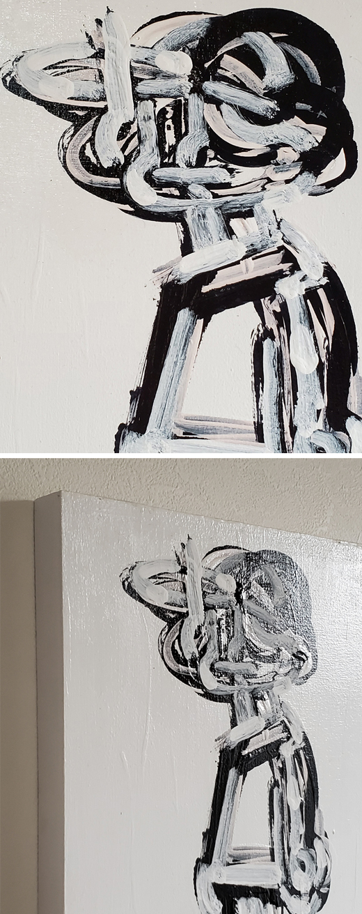 日々意識的無意識的に行っている反復運動とそれに費やした時間を、同じイメージを何度も描き重ねることで「生」を表現している。
